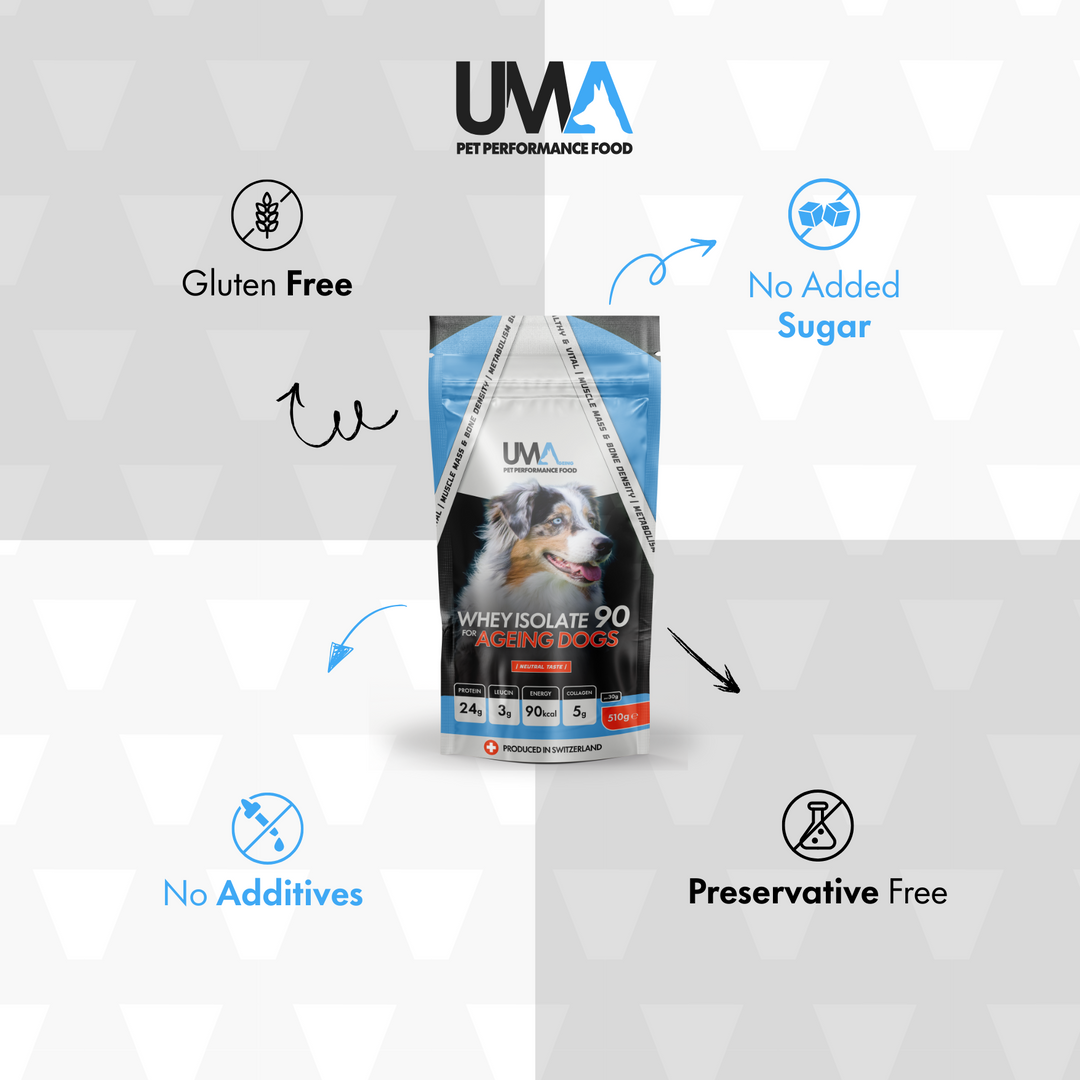 Absolutely! UMA is especially suitable for senior dogs who are still active or would benefit from strengthening their muscles and joints. Discover our supplementary food for aging dogs.